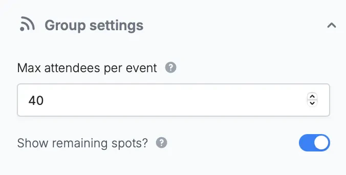 On the left-hand panel, input a number for Max attendees per event.